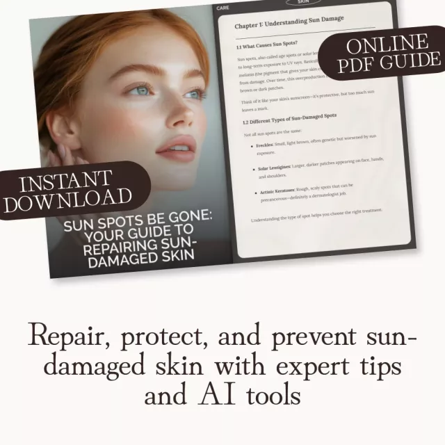 Say goodbye to stubborn sun spots and hello to radiant, even-toned skin with Sun Spots Be Gone: Your Guide to Repairing Sun-Damaged Skin. This comprehensive digital guide reveals expert-backed methods on how to repair sun damaged skin spots using both natural remedies and advanced dermatology insights. Perfect for anyone looking to fade discoloration, rebuild healthy skin, and prevent future damage—this downloadable resource combines science, skincare wisdom, and modern AI tools for lasting results.